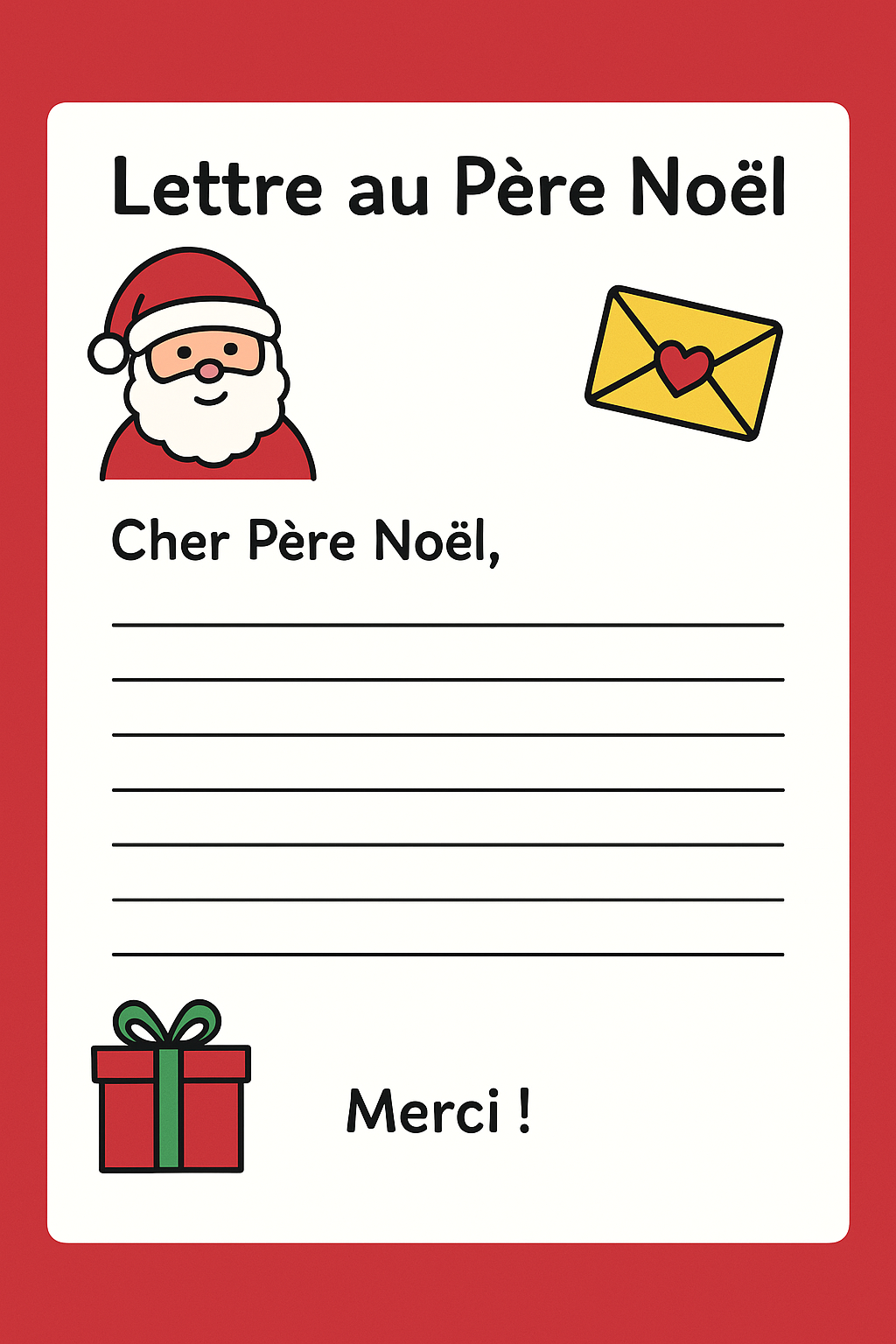 Lettre au Père Noël maternelle à télécharger : une activité ludique pour développer le langage, la créativité et la motricité des enfants.