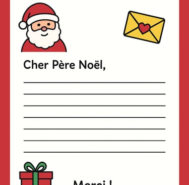 Les modèles de lettres : proposez des modèles simples de lettre au Père Noël pour la maternelle à compléter (prénom, âge, jouets préférés).